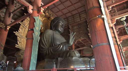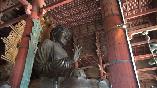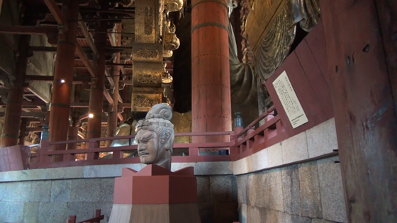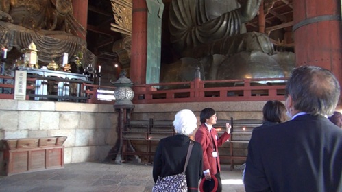 大仏殿に入ると、10数人程の人たちを対象に、若い男性のガイドが説明を行っているところだった。