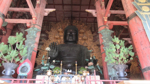 顔と体の色合いの違いを観光客に見せて、顔が300年前、身体が500年前、足元が1200年前、江戸と戦国と奈良の合作だとわかりやすく説明していく。