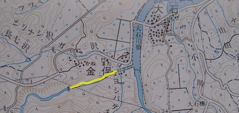 第6回は小川である。 大石川の本流に金俣集落を通り大石川に注ぐ支流が小川である。 この川はけっこう上流までいい釣り場が続くということだが、釣り師は堰堤までの黄線部分でしか釣ったことがない。 この小川で、2006年(平成18年)6月18日に27cmの山女と26cmの山女を釣り上げた。 27cmのこの山女は銀毛化していてパーマークが消え…