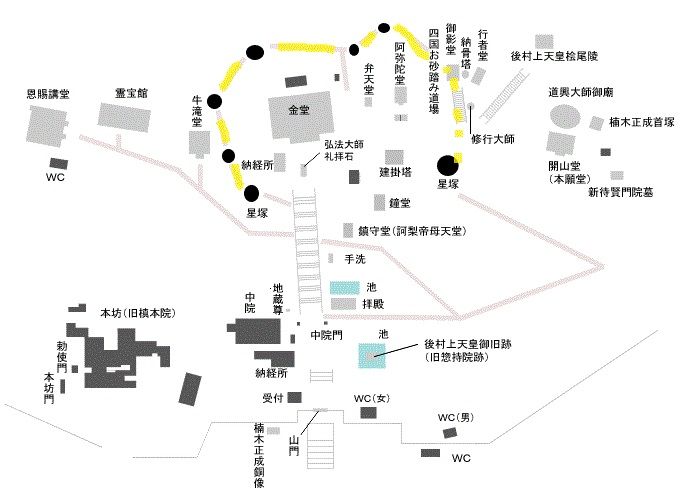 観心寺は空海と楠正成に関係のある広大な境内を持つ、大きな寺である。