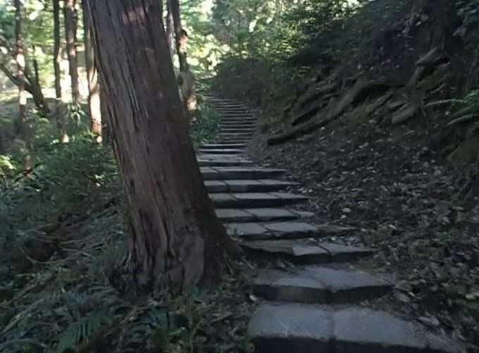 西行堂でしばらく休んでから、西行墓(西行墳)を目指して石畳の急坂を登っていく。