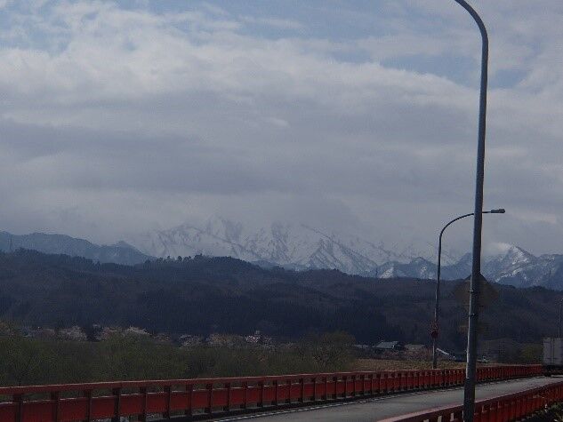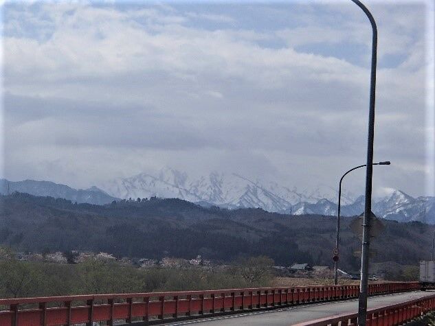 荒川に架かる小見橋からは、これもいつものように深田久弥の100名山に入っている、残雪をいただいた朳差岳の見事な秀峰が見えていた。
