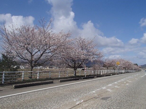 国道49号線沿いの桜並木は、いつもの年より1週間以上早く、もうすでに見ごろとなっていた。