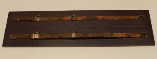鎮壇具の中には、陽剣、陰剣の象嵌銘(ぞうがんめい)が入った大刀2口など、何種類もの大刀や銀製の小壺などの出土遺品が、須弥壇の周囲から発見されている。